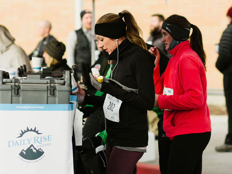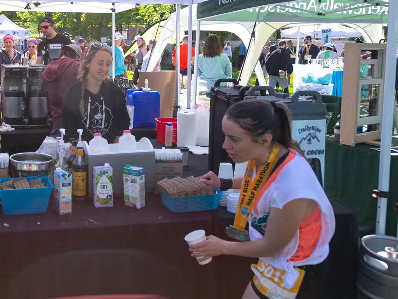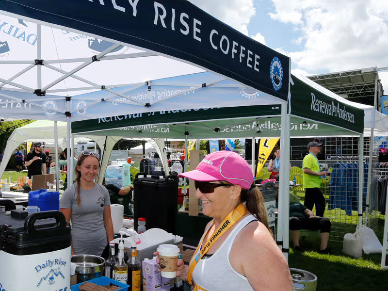 Each May we are so excited to set up and serve drinks in the Vendor Finish area! It is humbling, heartwarming and exciting to watch participants cross that finish line and to be able to hear some of the amazing stories from the runners leading them to this race.